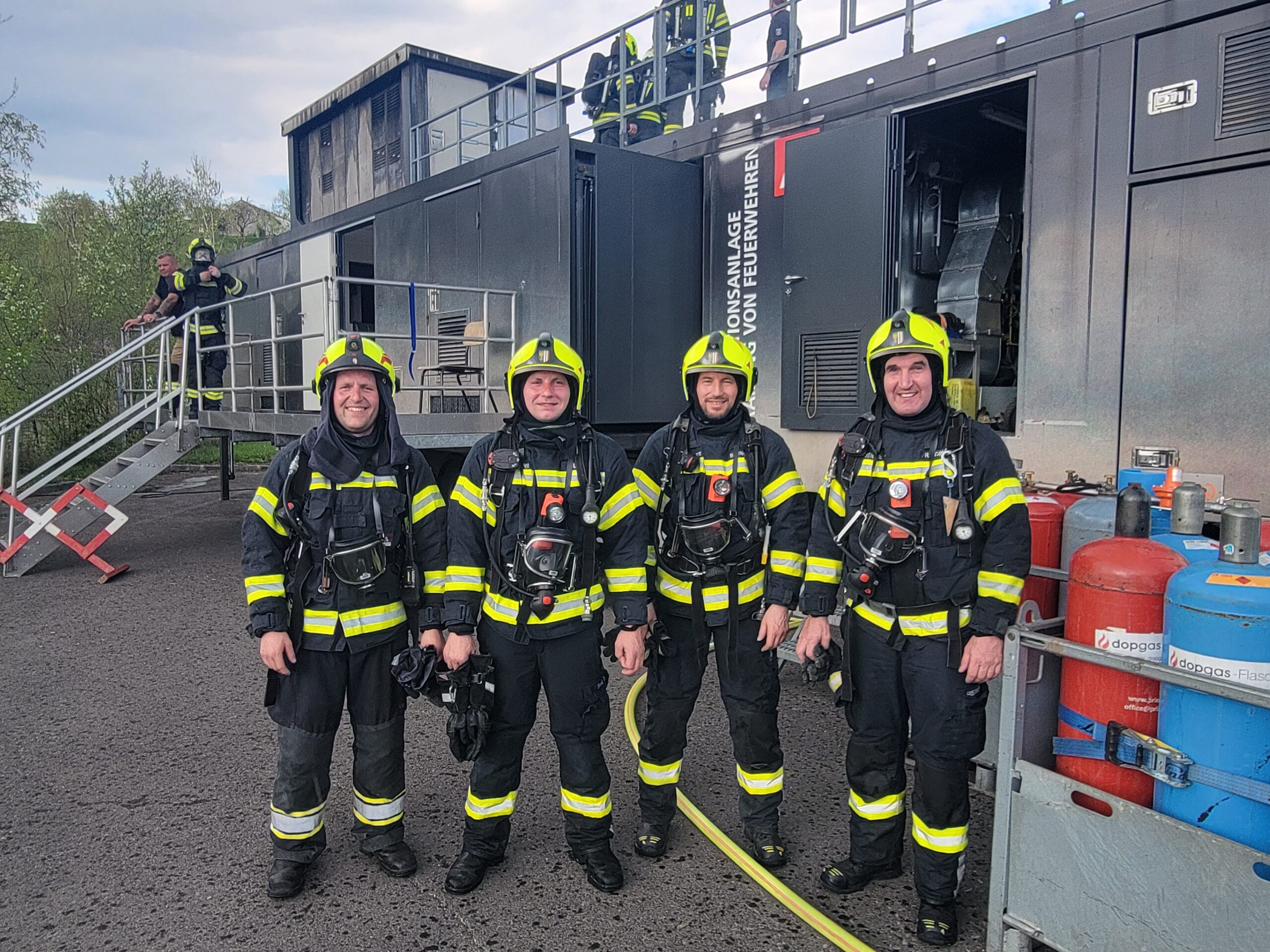 Am vergangenen Wochenende organisierte die FF Treffling eine Heißausbildung mittels mobiler Brandsimulationsanlage. Ein Atemschutztrupp der FF Schmiedgassen nutzte die Gelegenheit für ein intensives Praxistraining.